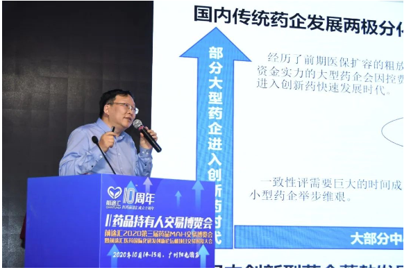 在当天上午聚会中,王廷春揭晓了名为《中国医药工业研发明状和转型升级趋势探讨》的演讲。