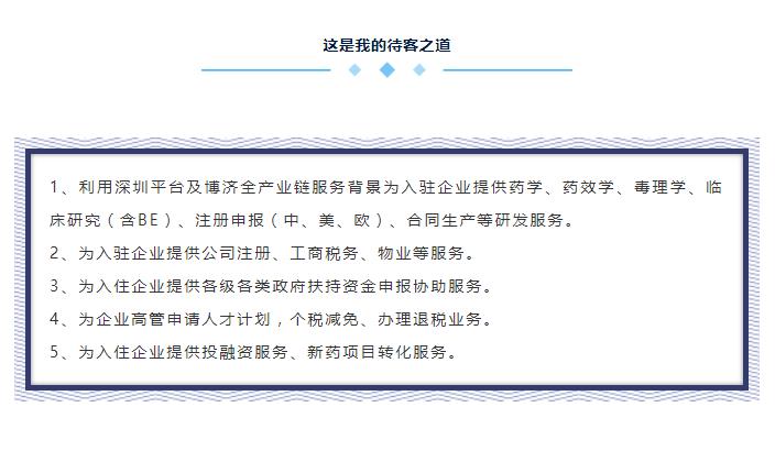 服务周全:园区可为平台入驻企业、科研机构、区内企业和共建的高校、主干企业提供实验检测以及人才作育等多方面的专业手艺公共服务,医药孵化企业、高条理人才可充分使用平台举行科研和效果转化。