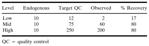 ËùÍøÂçµÄÉúÎïÑùÆ·ÖеĴý²âÎï±£´æÓÚ²î±ðµÄ»ùÖÊÖУ¬°üÀ¨Ñª½¬¡¢ÑªÇå¡¢ÄòÒº¡¢ÄÔ¼¹Òº£¨CSF£©¡¢ÊàŦ»¬ÒººÍ¾ùÖÊ»¯µÄ×éÖ¯¡£ÓÉÓÚ´ý²âÎïµÄÌØÕ÷»áÊܵ½Ñù±¾ÖƱ¸ÒªÁìÓ°Ï죬Òò´Ë±ØÐèÔÚÑù±¾ÊÕÂÞÀú³ÌÖÐÆÀ¹ÀÈçÏÂÒòËØ£ºËùÐèÒªµÄÈκÎÌí¼Ó¼Á£¨¿¹Äý¼Á¡¢ÂѰ×øÒÖÖÆ¼ÁµÈ£©¡¢´ý²âÎïµÄÎȹÌÐÔ£¨Ñª½¬»òѪÇåÊèɢǰµÄȫѪ£©¡¢Ñù±¾ÍøÂçºóµÄ´¦Öóͷ£ºÍÖü´æÌõ¼þ£¨Î¶ȡ¢Æ¿Ð͵ȣ©¡£²âÊÔÃûÌá¢Ñù±¾ÍøÂçÌõ¼þºÍÆäËûÒòËØ¿ÉÄÜ»áÓ°Ïì»ùÖʵÄÑ¡Ôñ£¬ÀýÈçÈôÊÇʹÓÃ×Ô¶¯»¯Ñù±¾´¦Öóͷ£ÏµÍ³£¬ÔòѪÇ彫ÊÇÊ×Ñ¡µÄ»ùÖÊ£¬ÓÉÓÚѪ½¬ÖÐͨ³£º¬ÓÐѪÏËάÂѰ×Äý¿é£¬¿ÉÄÜ»á×ÌÈÅÒÆÒº²Ù×÷¡£Ïà±È֮ϣ¬Ñª½¬ÊDz»Îȹ̴ý²âÎïµÄÊ×Ñ¡»ùÖÊ£¬ÓÉÓÚÖÆ±¸ÑªÇåËùÐèµÄʱ¼ä½Ï³¤£¬²¢ÇÒ±£´æÂѰ×Ë®½âø£¨proteolytic enzyme£©½µ½âÂѰ׵ÄÎÊÌâ¡£±¾ÎÄÉԺ󽫶ÔÑù±¾ÍøÂçºó»ùÖÊÖеĴý²âÎï¾ÙÐиüÈ·ÇеÄÎȹÌÐÔÆÀ¹À¡£¼Ó±êÑùÆ·£¨spiked sample£©µÄ»ùÖÊÓ¦µ±ÓëÔ¤ÆÚµÄδ֪Ñо¿Ñù±¾µÄ»ùÖÊÏàͬ£¬ÒªÊ¹ÓÃÏàͬµÄ»ùÖÊÖÆ±¸±ê׼Ʒ£¨±ê/У׼Ʒ£¬standard/calibrator£©¡£µ±ÔÚ»ùÖÊÖмì²â²»µ½ÄÚÔ´ÐÔÐźÅʱ£¬¼òÆÓµØ¼Ó±ê/½ÓÄÉÑо¿¾Í×ãÒÔÈ·¶¨ºÏÊʵĿÕȱ»ùÖÊ¡£ÔÚÕâЩÌõ¼þÏ£¬½¨ÒéʹÓÃ±ê³ÆÅ¨¶È£¨nominal concentration£©¡£Ïà·´£¬µ±»ùÖÊÖб£´æ¿É¶¨Á¿µÄÄÚÔ´ÐÔÎïÖÊ£¬²¢ÇÒÄÚÔ´ÐÔÎïÖʺÍÍâ¼Ó´ý²âÎïµÄ½ÓÄÉÂÊÊÇÀÛ¼Óʽ£¨ÏßÐÔ£©µÄʱ¼ä£¬¿ÉÒÔÓ¦ÓÃÒ»¸öУÕýÒò×Ó£¨ÀýÈçÄÚÔ´ÐÔŨ¶È4ng/mL£¬¼Ó±êÆÊÎöÎïΪ6ng/mL£¬ÀÛ¼ÓЧӦΪ10ng/mL£©¡£ÔÚÕâÖÖÇéÐÎÏ£¬¿É½«Ëù²â¶¨µÄÄÚÔ´ÐÔŨ¶ÈÓëËùÌí¼ÓµÄ´ý²âÎïŨ¶È£¨±ê³ÆÖµ£©Ïà¼ÓÀ´»ñµÃÖ¸¶¨Öµ£¨assigned value£©£¨±íIIAºÍ±íIIB£©¡£±íIIA.ÄÚÔ´ÐÔÂѰ×ÀÛ¼ÓТ˳ЧӦµÄʾÀý¡£ÔÚÕâÖÖÇéÐÎÏ£¬ÄÚÔ´ÐÔÂѰ׵ÄÓ°Ïì¿ÉÒÔÔÚµÍÖÊÁ¿±ÈÕÕÑùÆ·£¨QC£©ÖÐÊӲ쵽£»µ«Æä¶ÔÖС¢¸ßˮƽÖÊÁ¿±ÈÕÕÑùÆ·µÄÓ°Ïì²»´ó¡£