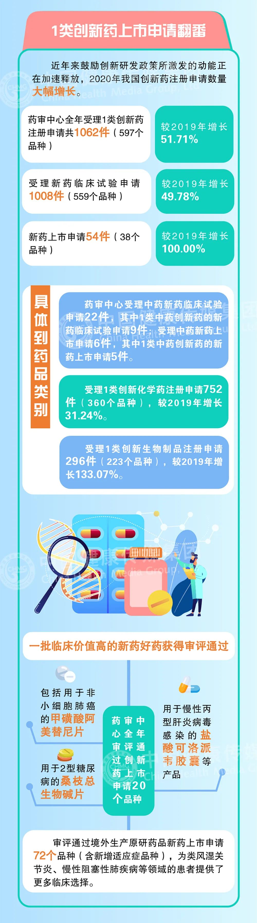 2020整年有59件新冠病毒疫苗和新冠肺炎治疗药物的注册申请被纳入特殊审批程序并完成手艺审评;受理1类立异药注册申请共1062件(597个品种),较2019年增添51.71%;审评通过新药上市申请208件,较2019年增添26.83%;审评通过立异药上市申请20个品种(1类化学药14个、中药立异药4个、立异生物制品2个),审评通过境外生产原研药品新药上市申请72个品种(含新增顺应症品种)……今天(6月21日),国家药监局官网宣布了《2020年度药品审评报告》。