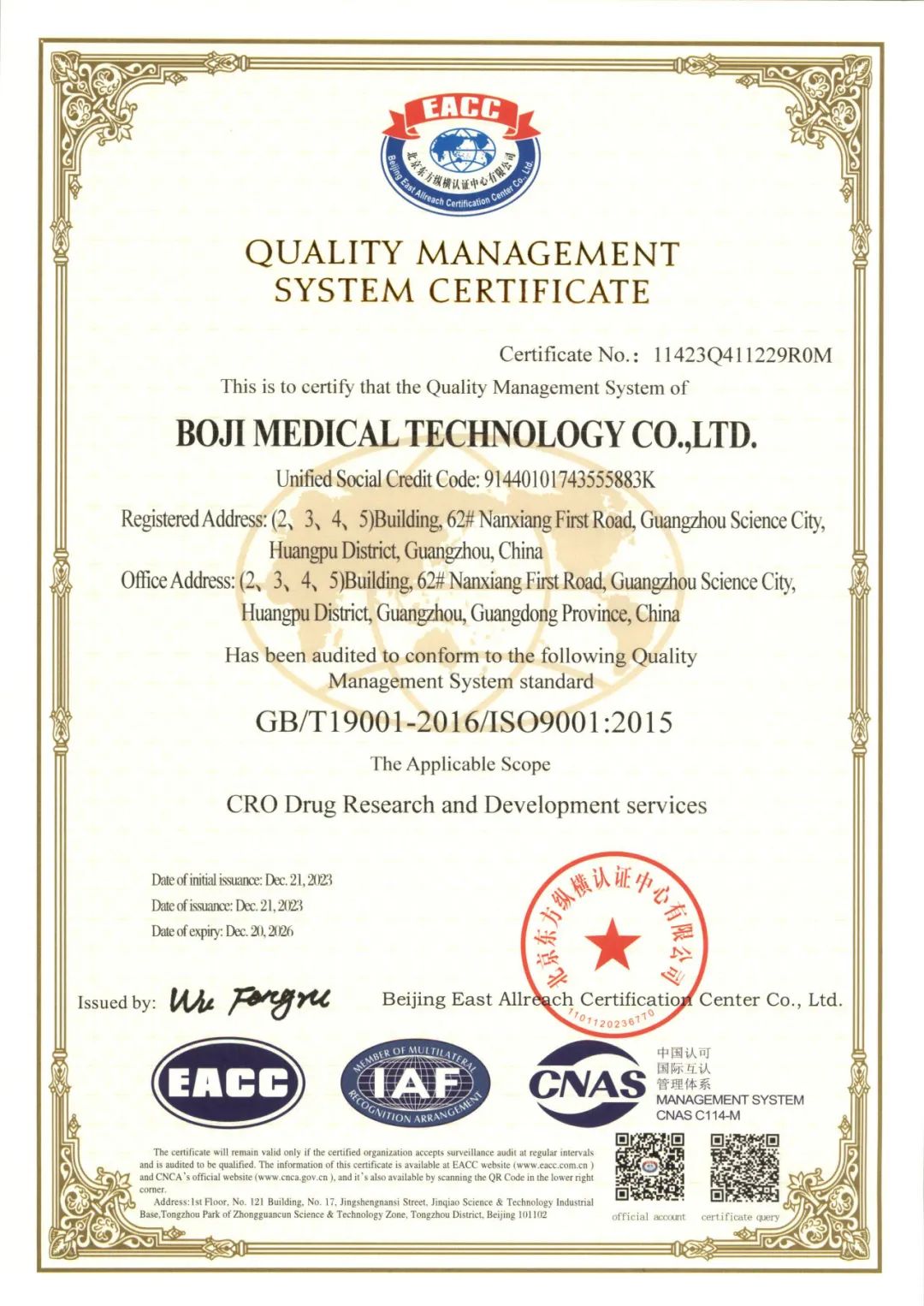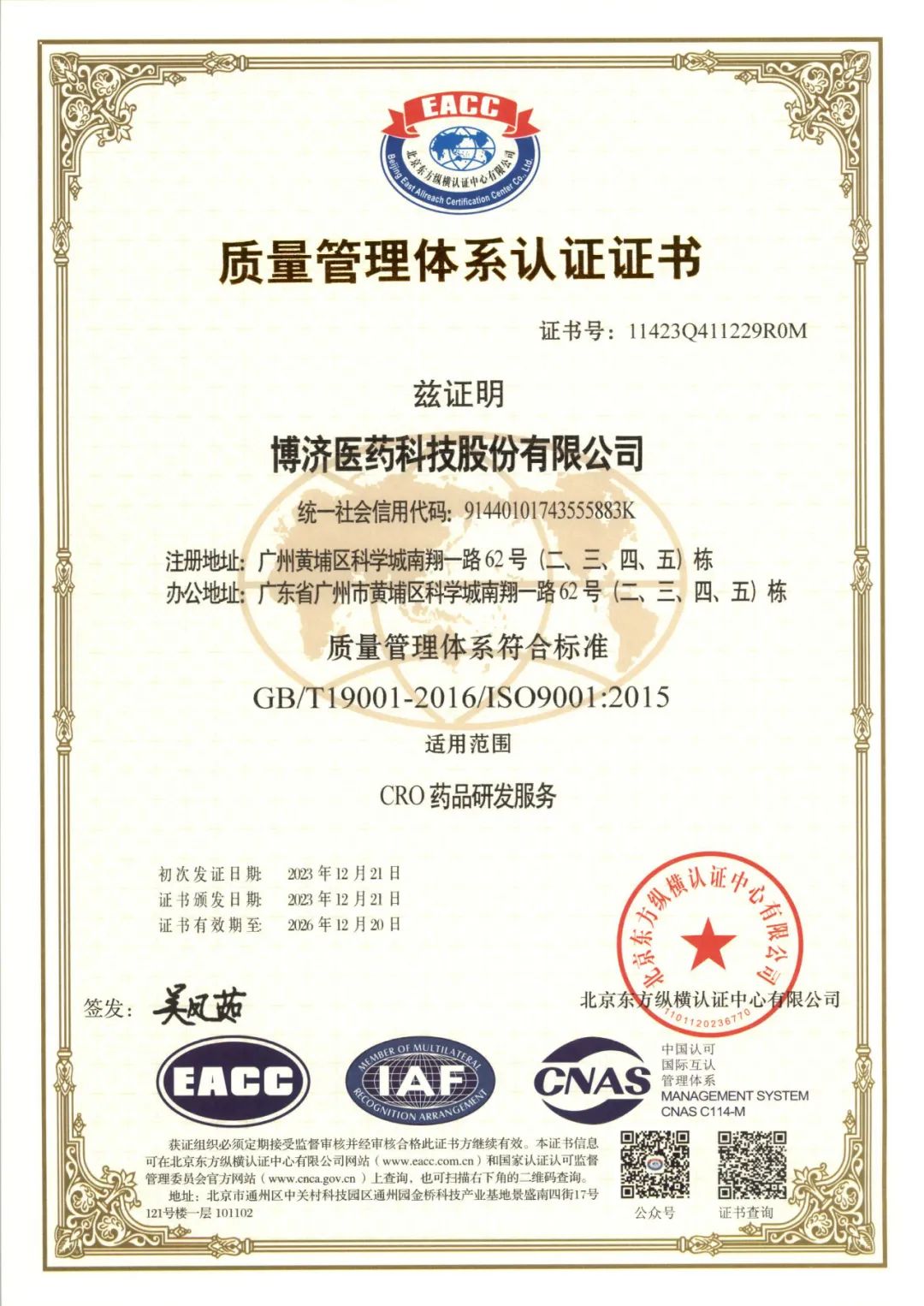 333体育官网医药相关认真人体现,本次认证通过彰显了333体育官网医药具有为客户提供高品质服务的资质以及切合规则规范的质量系统 。通过ISO 9001提供的质量管理框架,333体育官网医药将始终以客户为中心,以质量为生命,一直完善和优化企业的管理流程和产品质量,为客户提供更优质、更高效、更专业的CRO服务!
